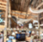 vintage fishing rods, sail material, rope, air filter, netting, paint splattered tarp.